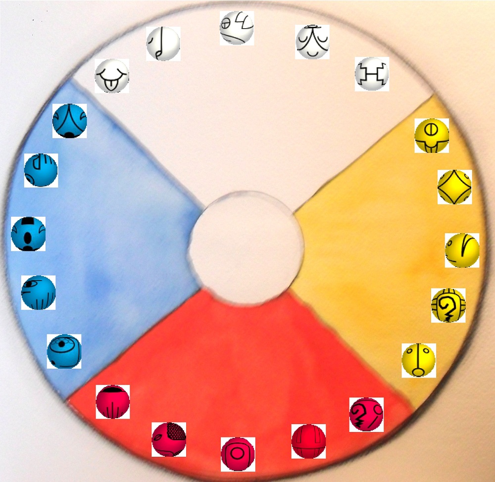 Het Oosten van het medicijnwiel is geelgekleurd.