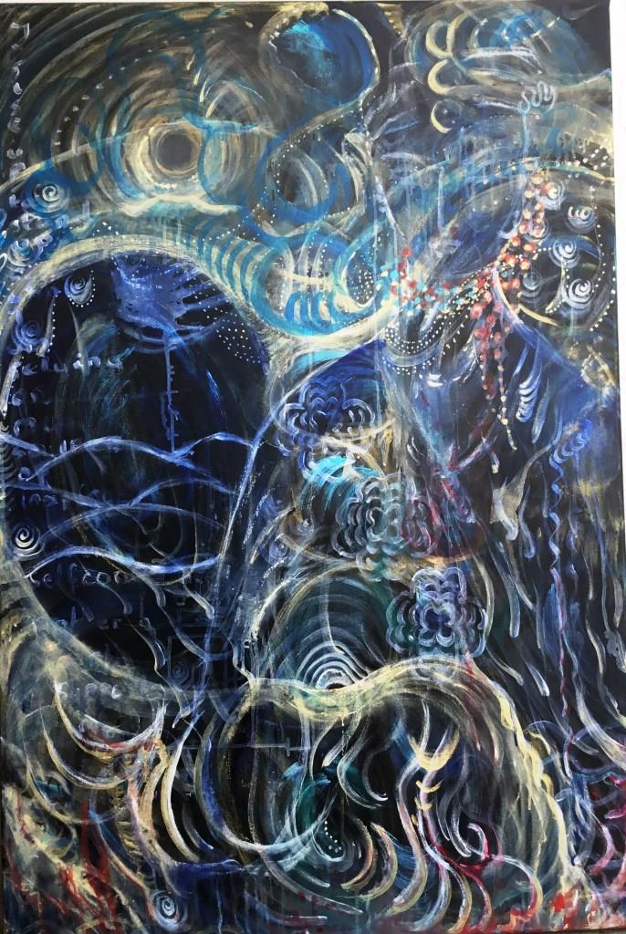 Dit is een schilderij in wording. Het duurt twee jaar voordat Shiloh alle instructies heeft gegeven, maar ik kan de sfeer van haar aanwezigheid al proeven…