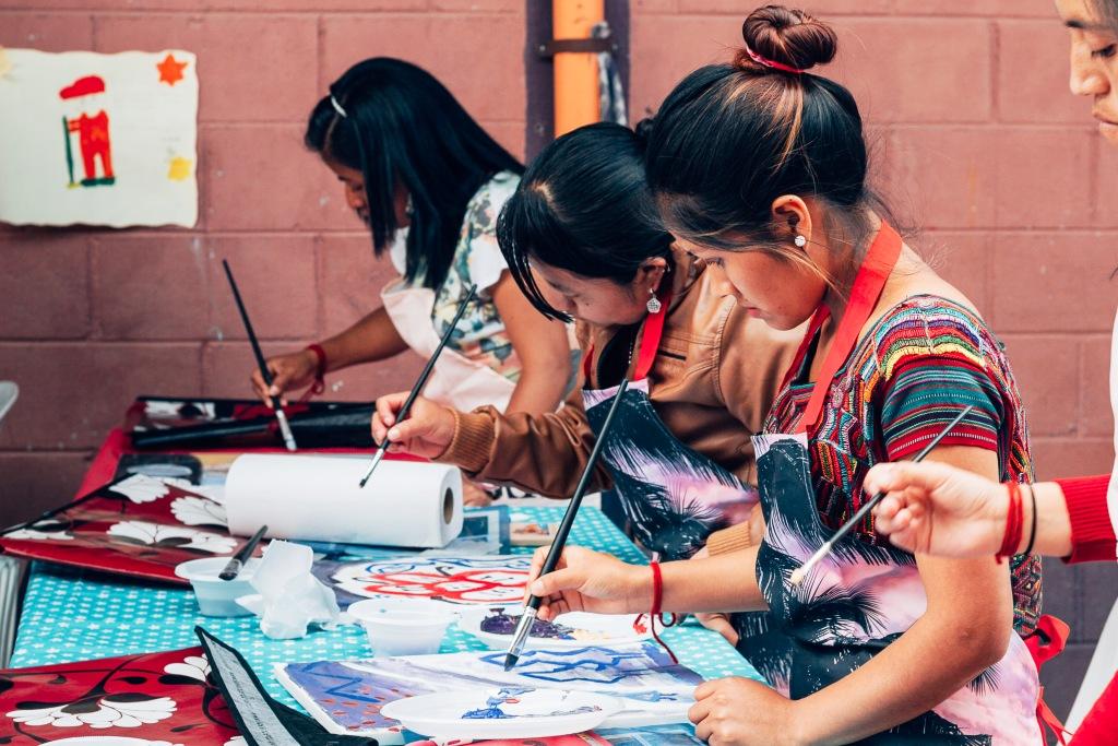 In een nieuw dorp van SOS Kinderdorpen in Santa Cruz, Guatemala, heb ik geschilderd met de moeders van het dorp.