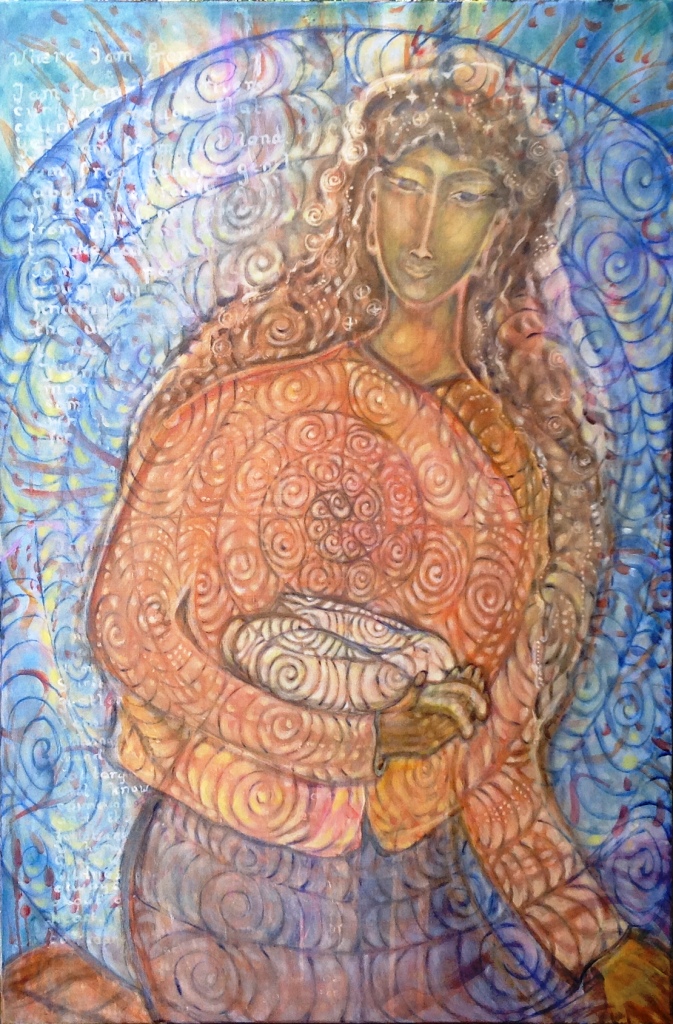 Over de achtergrond van de grootmoeders heb ik een figuur geschilderd.