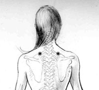 We are looking for the area which is in between the top of your shoulder blade and the spine.